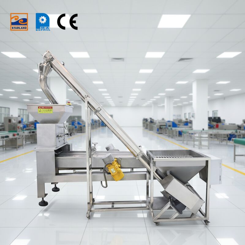 कचरे को उपयोगी उत्पादों में परिवर्तित करें जिनका उपयोग आइसक्रीम, चॉकलेट, केक, मिठाई आदि के लिए सजावट के लिए किया जा सकता है।डिस्चार्ज पोर्ट धातु विदेशी पदार्थ को हटाने के लिए मजबूत चुंबकीय प्लेट से लैस हैबड़े वेफल्स/बिस्किट को पुनः कुचलने के लिए एक सर्पिल कन्वेयर शामिल है।