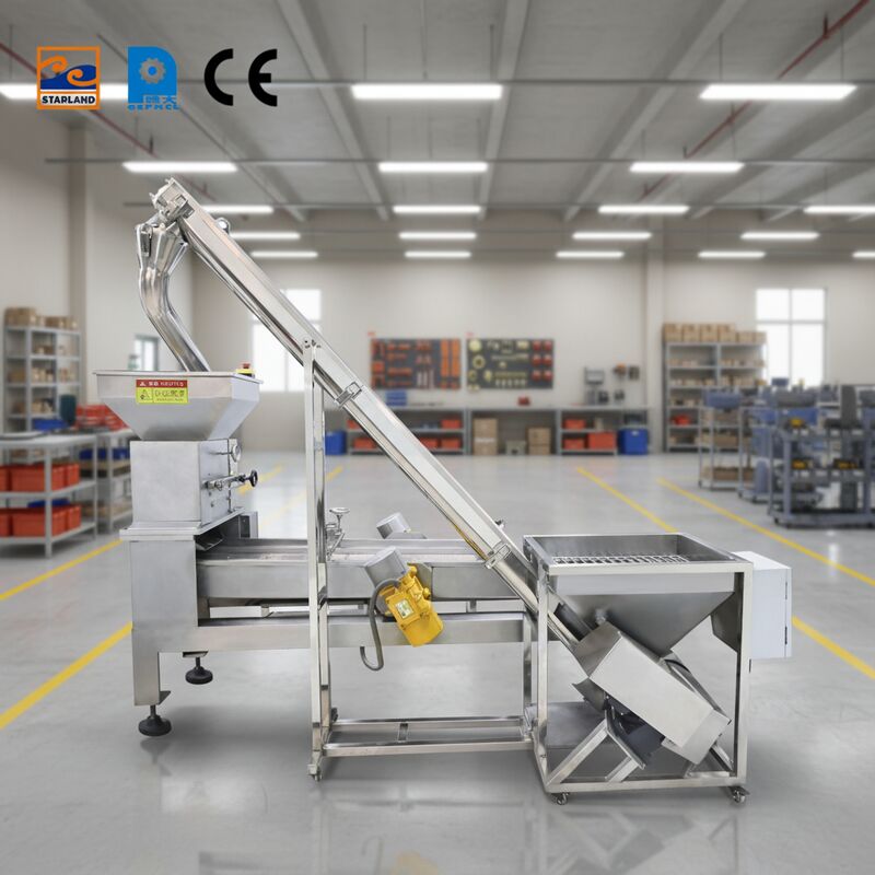 कचरे को उपयोगी उत्पादों में परिवर्तित करें जिनका उपयोग आइसक्रीम, चॉकलेट, केक, मिठाई आदि के लिए सजावट के लिए किया जा सकता है।डिस्चार्ज पोर्ट धातु विदेशी पदार्थ को हटाने के लिए मजबूत चुंबकीय प्लेट से लैस हैबड़े वाफल्स/बिस्किट को पुनः कुचलने के लिए एक सर्पिल कन्वेयर शामिल है।